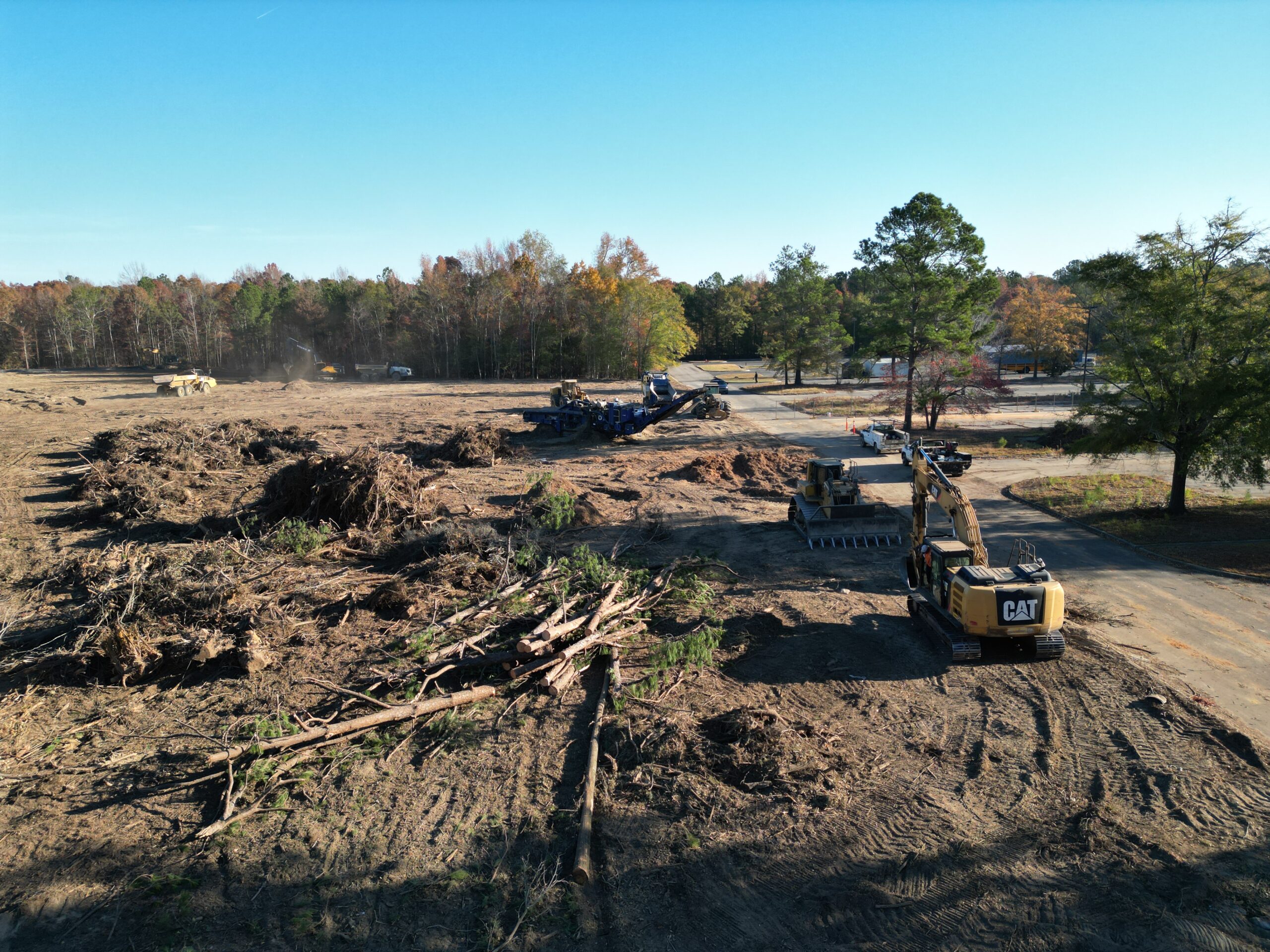 American Leadership Academy (ALA) – Blythewood Campus was a large-scale site development project requiring extensive preparation and infrastructure installation. The project began with clearing and milling of existing asphalt to facilitate construction of the gymnasium building pad, followed by mass land clearing and grading to establish proper site elevations across the campus. Our scope also included installation of underground utility systems to support future facilities and site operations. Work was executed with careful coordination and sequencing to maintain progress and meet project milestones.