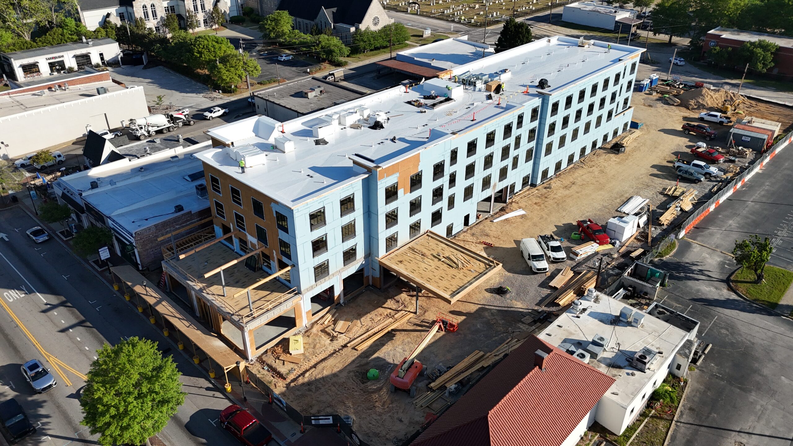 Courtyard by Marriott involved site redevelopment and infrastructure improvements to support a new hospitality facility. The project began with selective demolition to clear existing features, followed by grading of the site and entrance area to establish proper elevations and access. Our scope included installation of new curb and gutter systems, an underground detention system, and asphalt paving throughout the site. Work was completed in accordance with design specifications and sequencing requirements to ensure a smooth transition from site prep to vertical construction.