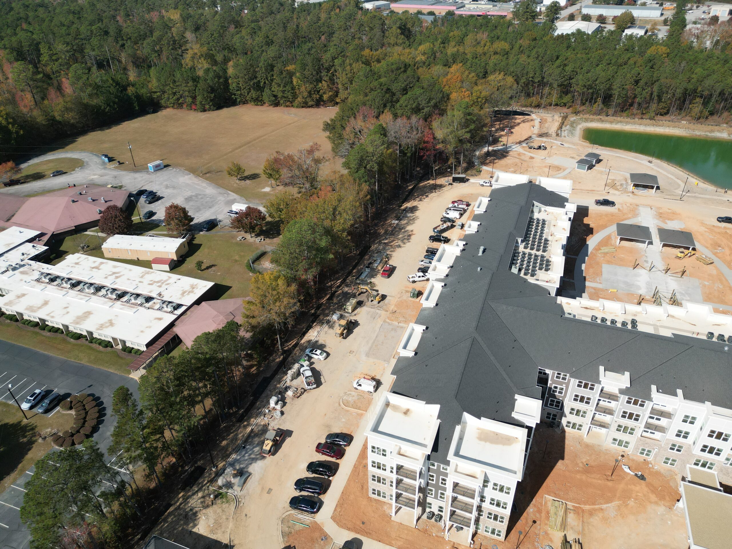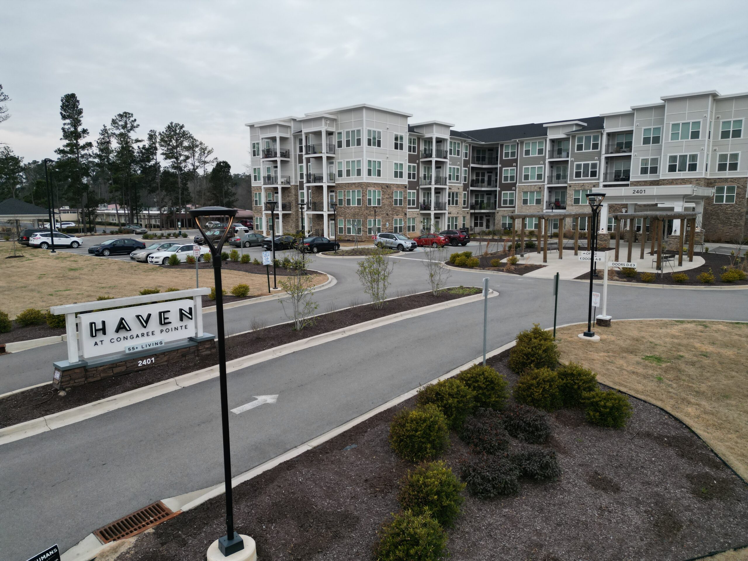 The Haven at Congaree Pointe is a 55+ assisted living community development requiring comprehensive site preparation and infrastructure installation. Our team performed extensive land clearing and grading, along with underground utility installation, to establish a solid foundation for the project. Scope of work also included curb and gutter installation and asphalt paving, all completed in accordance with ADA requirements and project specifications. The project was executed efficiently to support safe access, long-term functionality, and successful vertical construction.