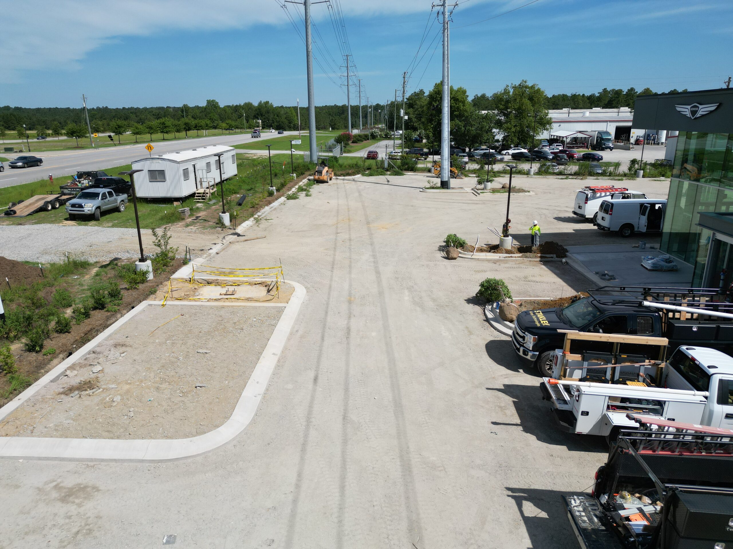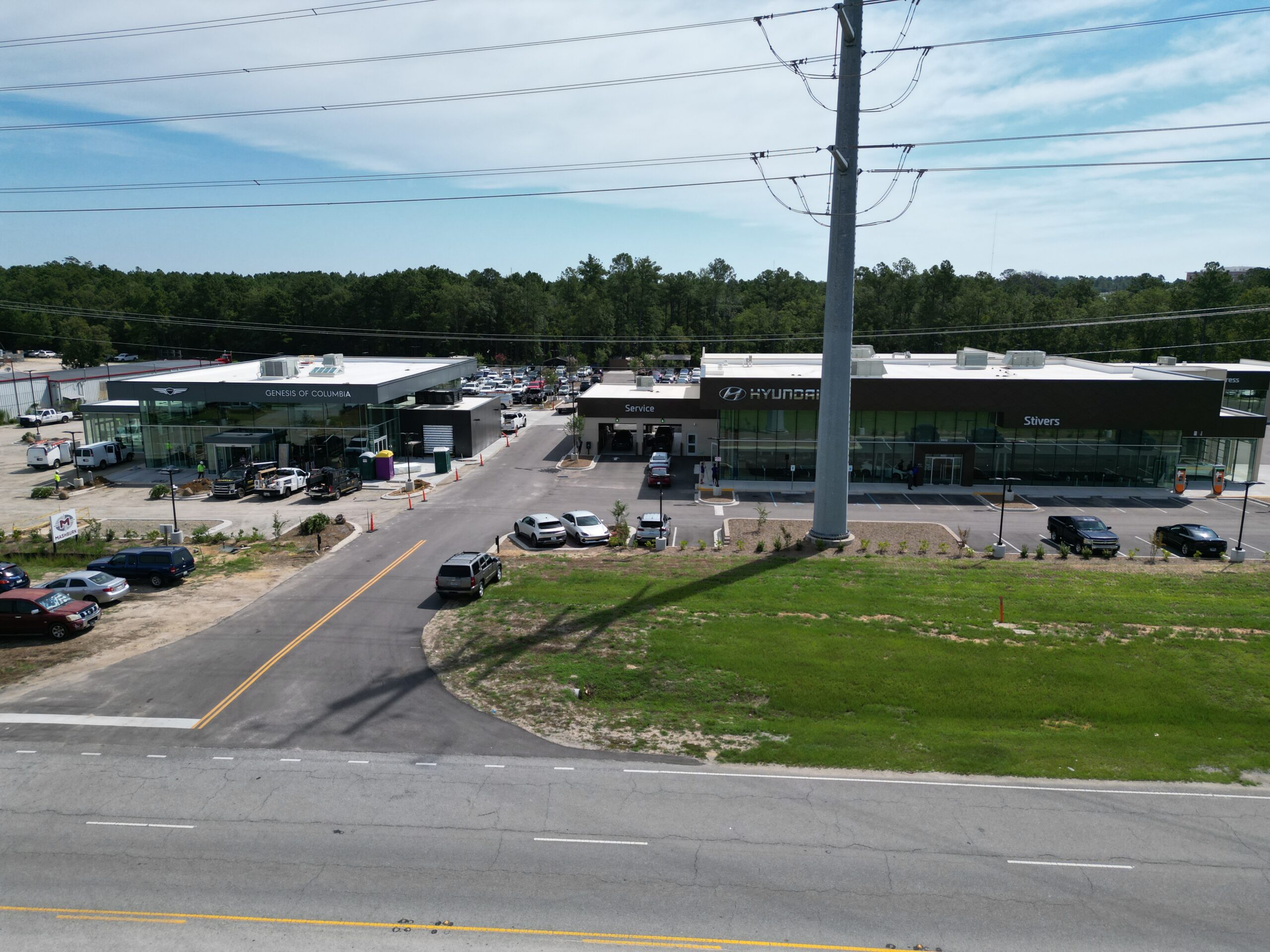 This project consisted of civil site development for the Stivers Hyundai dealership, seamlessly integrating new construction with the existing Stivers Genesis dealership infrastructure. Work included grading and preparation for building pads, underground utilities, and stormwater management systems. The project also involved tying new asphalt paving, curb, and gutter systems into the pre-existing dealership surfaces to ensure consistent drainage, traffic flow, and visual continuity across the property. Subgrade preparation was completed to support high-traffic areas, delivering a cohesive and functional dealership expansion. Dirt: Storm: 1700+ Linear Feet Paving: 19,000 Square Yards Demolition: NO