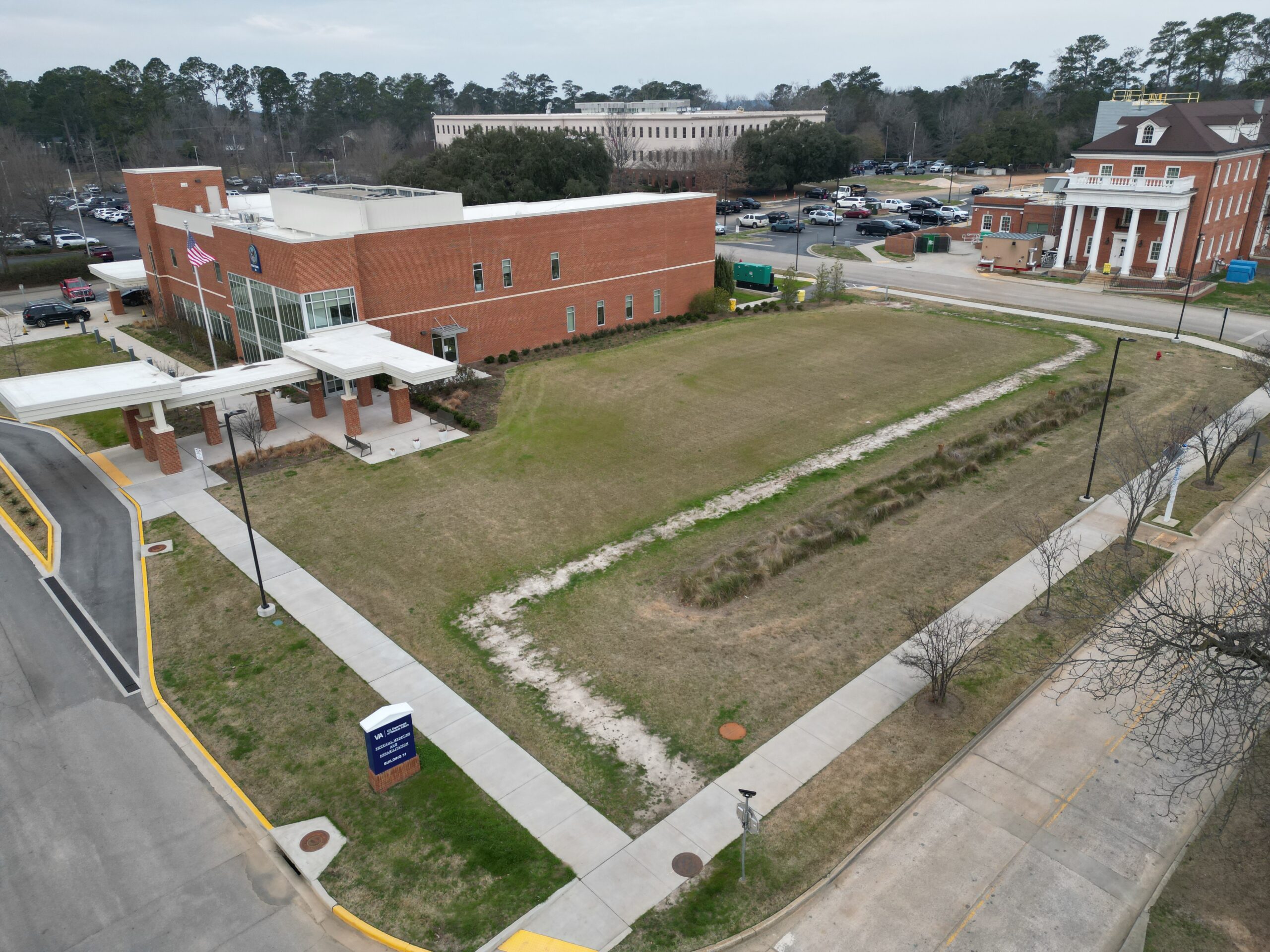 The Dorn VA Rehabilitation Center project focused on efficient, schedule-driven civil site work delivered on time and within budget. Our scope included land clearing and debris removal, followed by precise grading to support new curb and gutter systems and prepare the site for asphalt paving. Dirt: 3,000+ Cubic Yards Storm: 600+ Linear Feet Paving: 350+ Square Yards Demolition: Yes there was demolition work that was needed prior to site prep work.